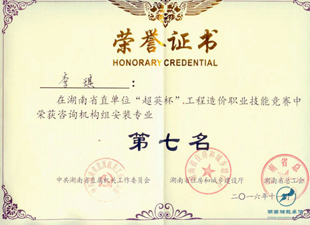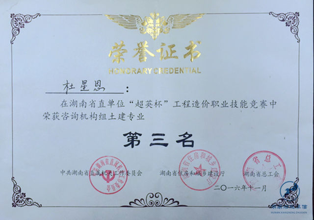 2016年11月28日, 由湖南省直屬機(jī)關(guān)工作委員會(huì)、湖南省住房和城鄉(xiāng)建設(shè)廳、湖南省總工會(huì)聯(lián)合舉辦,湖南省建設(shè)工程造價(jià)管理協(xié)會(huì)承辦的湖南省直首屆“超英杯”工程造價(jià)職業(yè)技能競(jìng)賽在長(zhǎng)沙建筑工程學(xué)校圓滿落幕。