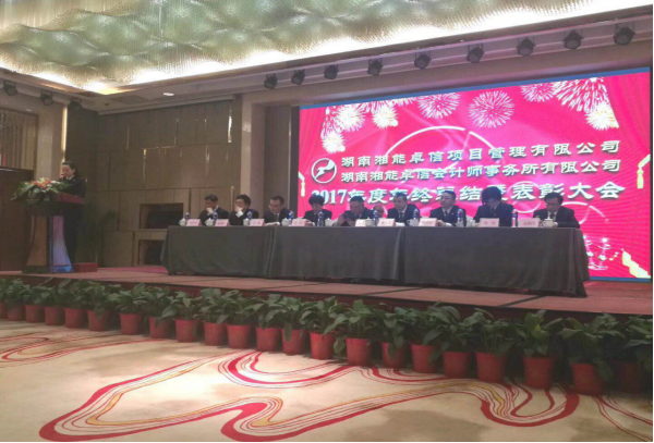 2018年2月13日,湖南湘能卓信項目管理有限公司和湖南湘能卓信會計師事務所有限公司在融程花園酒店召開了2017年年終總結(jié)暨表彰大會,會議由辦公室主任徐旺興主持,集團全體員工參加。