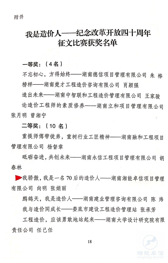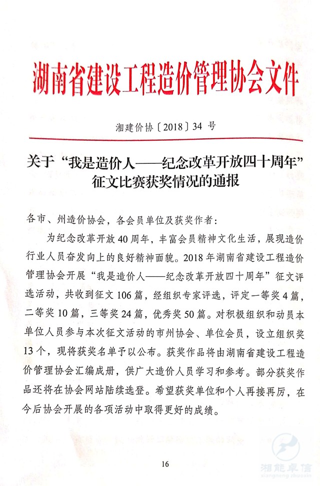 關(guān)于“我是造價人—紀(jì)念改革開放四十周年”征文比賽獲獎情況的通報
